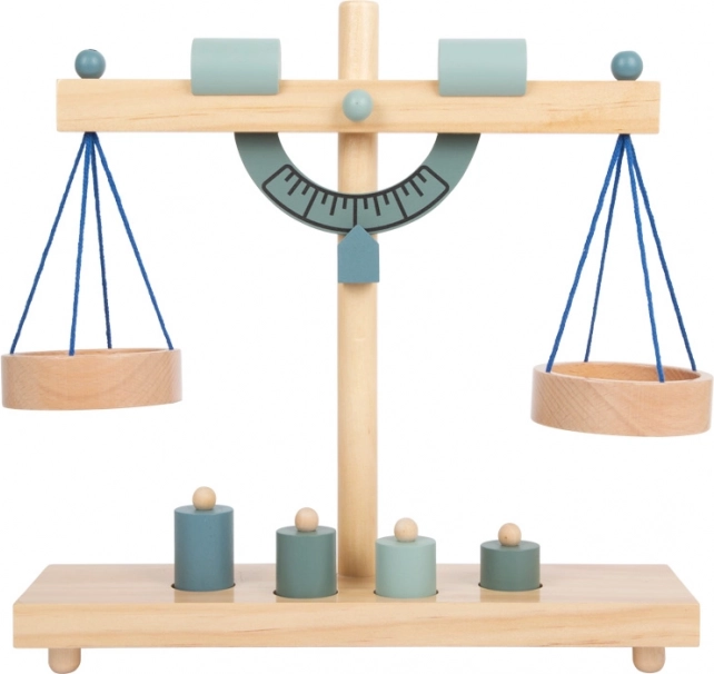 Тази стабилна дървена купична везна е идеална както за детски магазин, така и за детска кухничка. Двете окачени купички и комплектът от четири дървени тежести позволяват на децата прецизно да „претеглят стоката“ и да разберат как работи равновесието. Плъзгащите се противотежести на рамената служат за фино настройване – чудесен начин за трениране на търпение и концентрация.