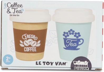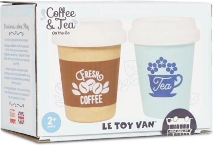 Стилен детски комплект от две чашки за кафе и чай за вкъщи от LE TOY VAN за реалистична игра. Изработен от FSC дърво, без пластмаси и боядисан с нетоксични бои на водна основа. Идеален за детска кухня и за игра на продавач, стимулира креативността и развитието на социалните умения.