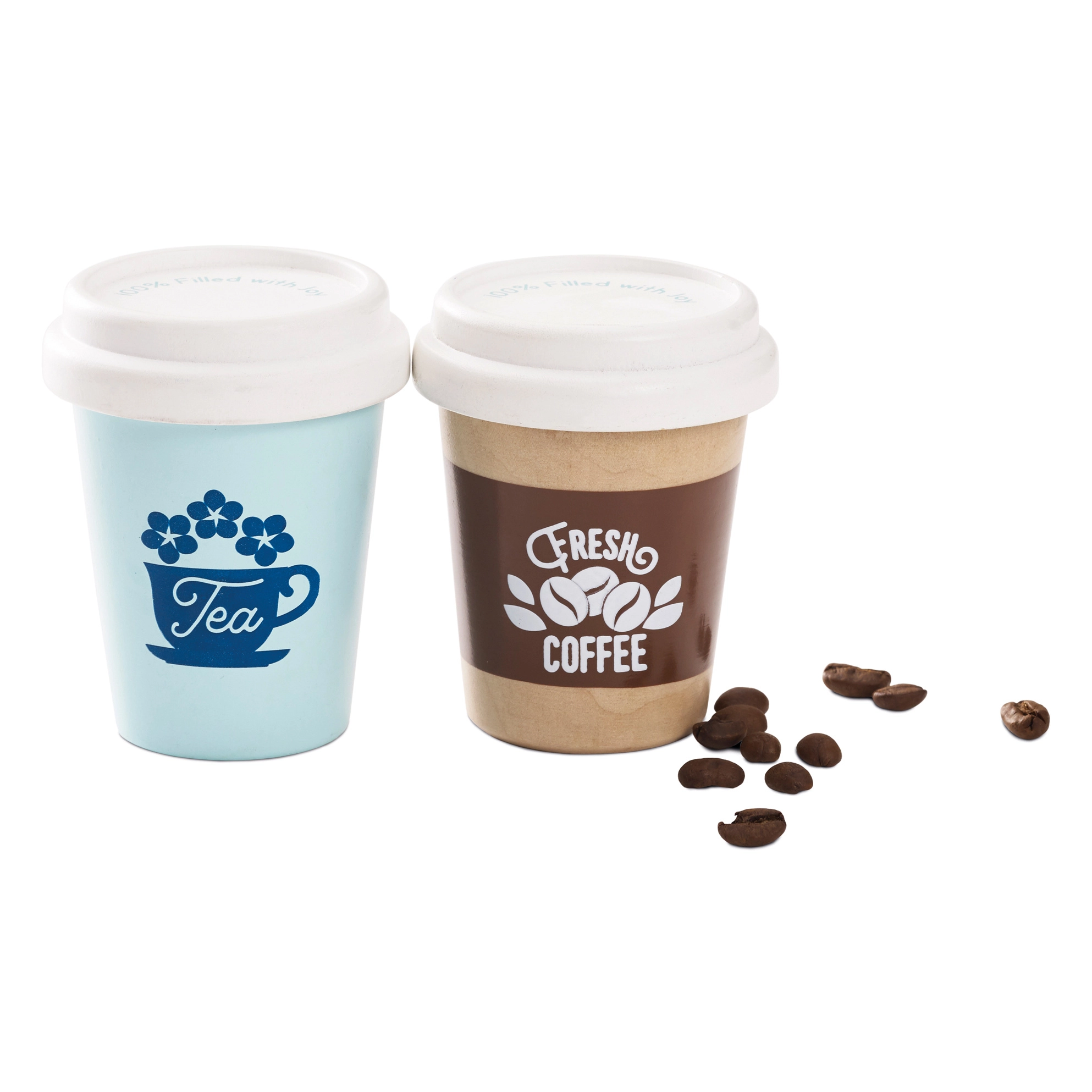 Подарете на децата автентично изживяване в игра на възрастни с комплекта кафе & чай to‑go. Две сладки чашки с капачета и собствен принт „Fresh Coffee“ и „Tea“ са подходящи за всяка детска кухня и продавачски щанд. Благодарение на здравата изработка издържат на интензивна ежедневна игра.