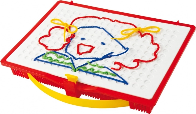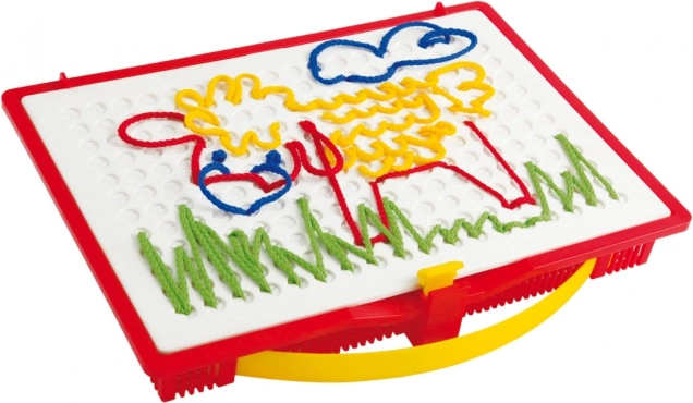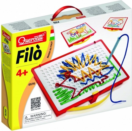 Открийте магията на креативната игра с комплекта за вышиване Quercetti Filò, който стимулира детското въображение и фината моторика. С помощта на специалните писалки децата могат да създават различни картинки, като вкарват цветните връвчици в отворите на игралната дъска, което им носи радост и забавление.