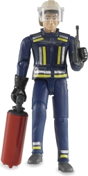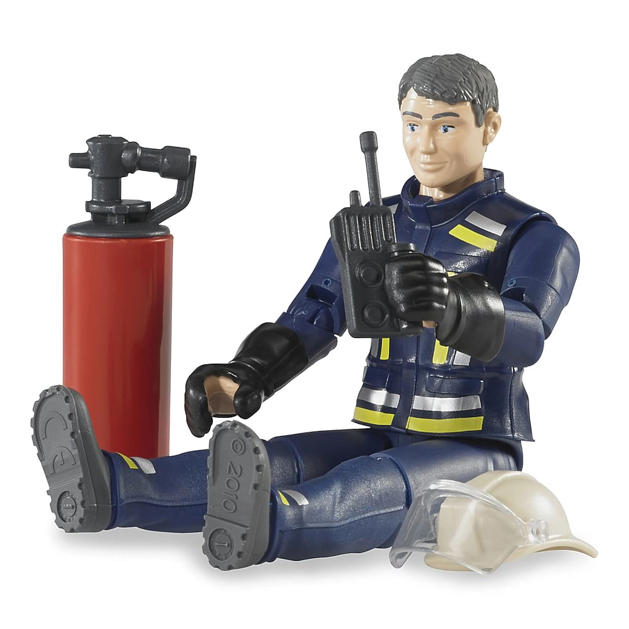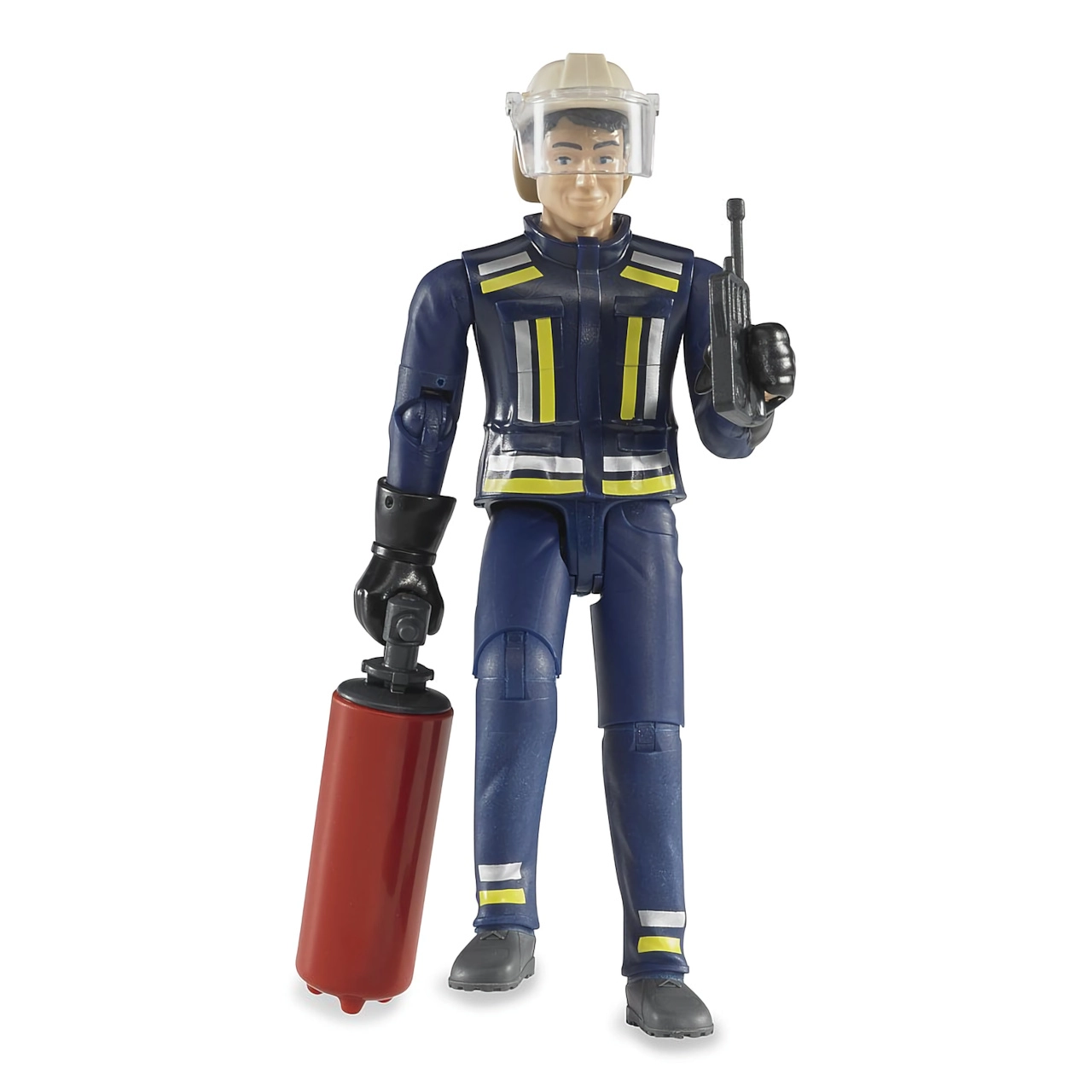 Реалистична фигура на пожарникар BRUDER Bworld с подвижни стави и богато разнообразие от аксесоари носи на децата часове креативно забавление. Включва каска с визьор, радиостанция, пожарогасител и ръкавици. Произведено в Германия от висококачествен ABS пластмаса и поликарбонат.