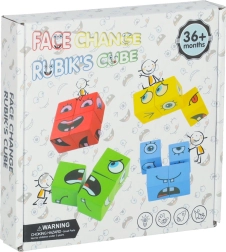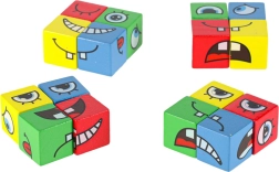 Гладко шлифовани кубчета с печат на очи и уста позволяват подреждане на десетки изражения. Здрави, безопасни и приятни за държане.