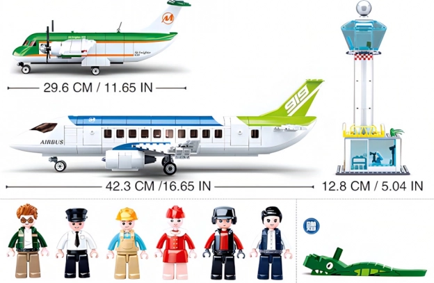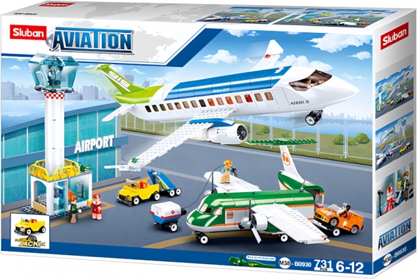 Този креативен конструктор Sluban от авиационната серия предлага цялостна летищна сцена: голям пътнически самолет, по-малък летателен апарат, контролна кула, обслужващи превозни средства и 6 детайлни фигурки на екипажи и служители. Благодарение на 731 части и средна трудност е идеален за деца от 6 години и нагоре, както и за игриви родители. Частите са изработени от висококачествена, безопасна за здравето ABS пластмаса и лесно се комбинират с елементи от известни конструктори.