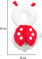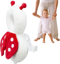 Мека защитна раничка във формата на калинка предпазва детската главичка при първите опити за изправяне, пълзене и ходене. Еластични регулируеми презрамки държат възглавничката стабилно на гърба, а кръговият пръстен около главата омекотява паданията върху тила. Лекичка, нежна и приятна на допир за ежедневна употреба.