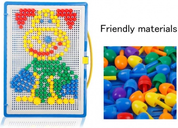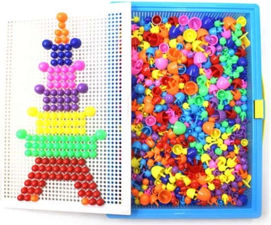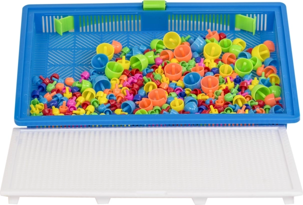 Тази играчка е любима на поколения деца и буди носталгия у възрастните. Простата конструкция се състои от цветни пластмасови гъбчета с различни размери и перфорирана дъска за поставянето им. Всичко е събрано в компактно куфарче, за да може вашето дете да вземе любимата си играчка навсякъде.