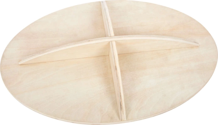 Здрава дървена конструкция с гладка повърхност е приятна на допир и устойчива за ежедневна употреба. Полусферичната/заоблена основа създава деликатно люлеещо движение, което активира дълбоката стабилизираща система и подпомага правилната стойка на тялото. Идеална за деца от 5 години, както и за лек тренинг у дома или в детската градина.
