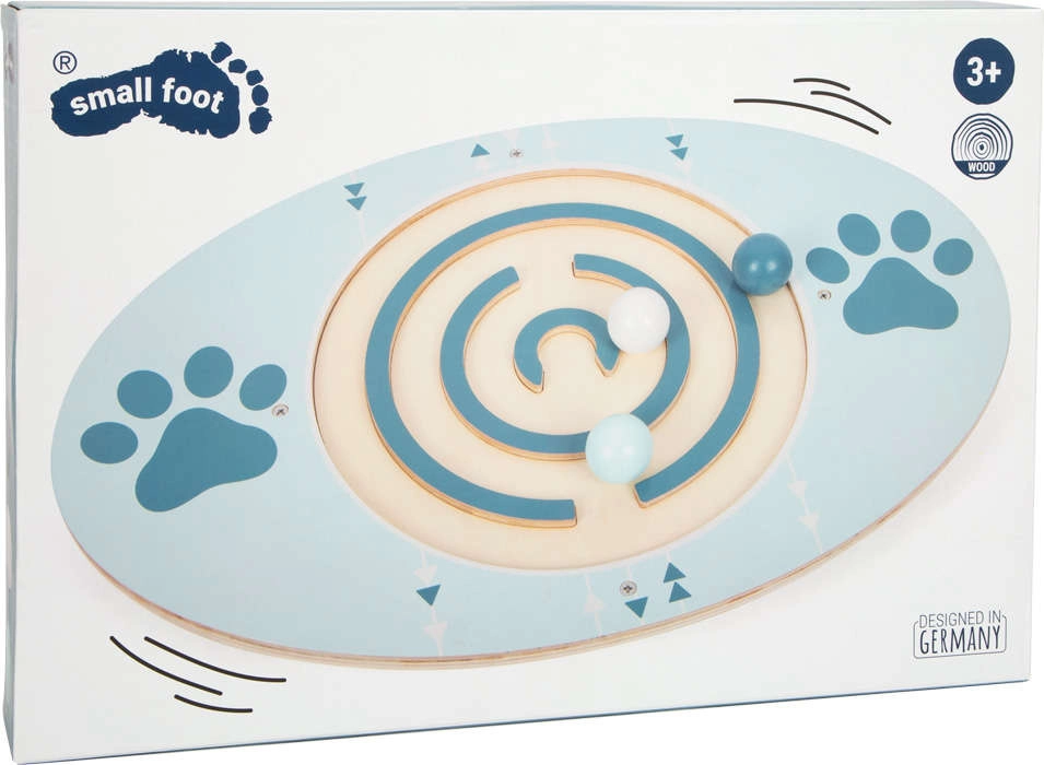 Дървената балансова дъска Small Foot съчетава игра и движение. Овалната повърхност със спираловидна пътечка и свободно движещи се топчета изпитва вашето равновесие – с накланяне на дъската водите топчетата през лабиринта и тренирате координация око–ръка, наблюдателност и стабилност.