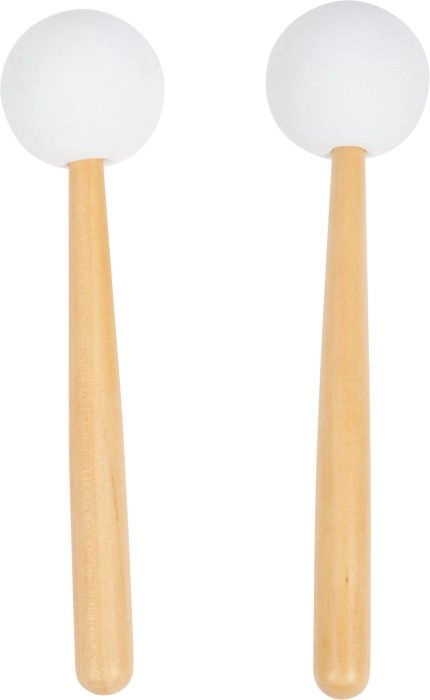 Две палки с бели сферични върхове осигуряват мек, чист тон, щадящ детските уши и насърчаващ по-дълга игра без излишен шум.