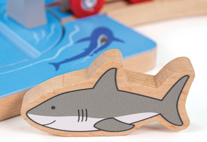 Водовъртежът с акули превръща всяко дървено влакче в напрегната океанска мисия. Децата управляват въртящата се секция от трасето и решават дали влакът да премине безопасно покрай акулите. Този игрови елемент внася напрежение, истории и активно участие.