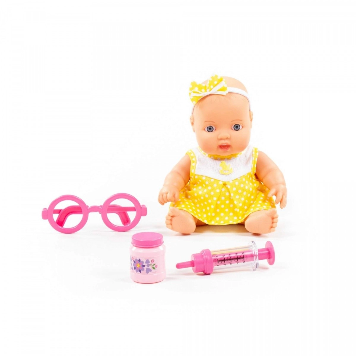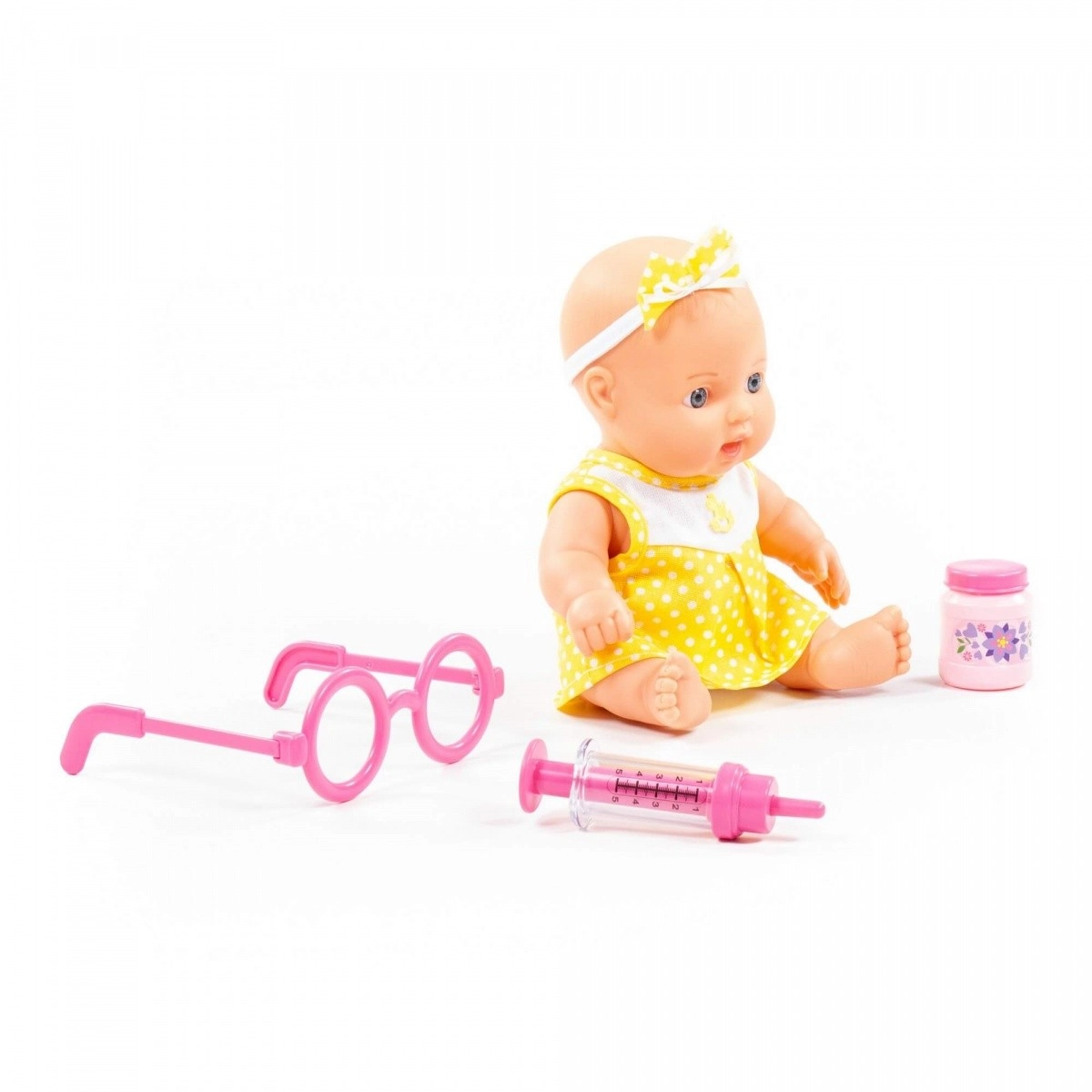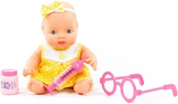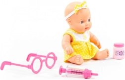 Тази реалистична кукла в жълта рокличка на точки с панделка е създадена за малки грижещи се. Благодарение на подвижните ръчички и крачета се държи лесно и е удобна за манипулиране. Докторският комплект стимулира естественото любопитство и учи децата на емпатия и грижа.