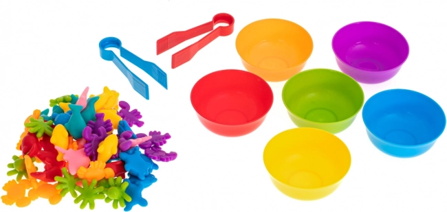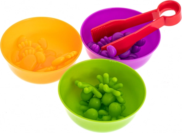 Шестте цветни купички и 36-те фигурки позволяват на децата да сортират, сравняват и броят – отлична основа за математически умения.