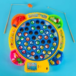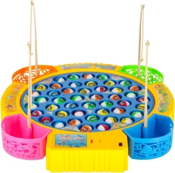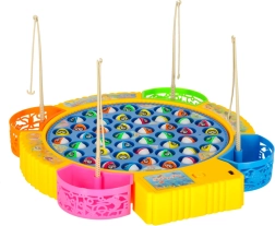 Забавна семейна игра за риболов с въртяща се платформа и музика, която включва 45 рибки и 4 въдички за 1–4 играчи. Подпомага рефлексите, концентрацията и сръчността, има цветни подвижни чашки за улова и звукови ефекти. Захранване с 3× AA батерии.