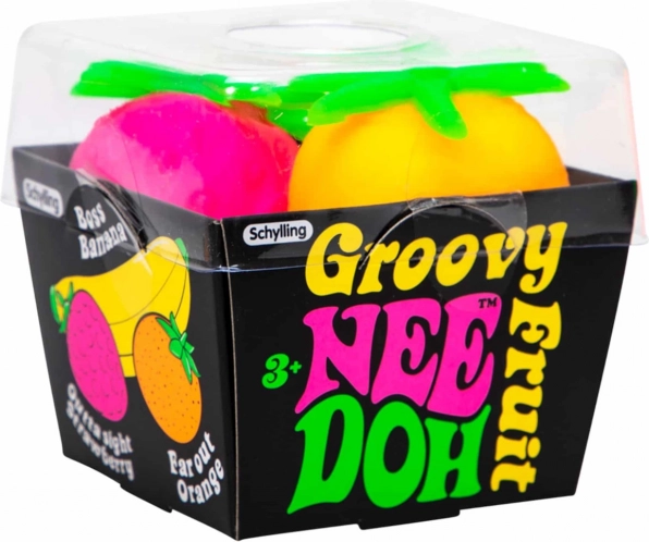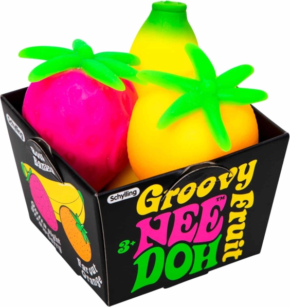 Schylling Groovy NeeDoh стискащи плодове предлагат уникален начин да се забавлявате и едновременно с това да намерите спокойствие. Тези плодови топчета са идеални за игра в движение или като средство за облекчаване на тревожността. Изработени са от нетоксичен материал, който винаги се връща в първоначалната си форма. Позволяват стискане, разтягане и дърпане, което подпомага концентрацията и вниманието. Подходящи са за деца и възрастни с ADD, ADHD, OCD, аутизъм и тревожност.