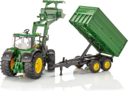 Тракторът е допълнен от тандемно ремарке с функция за накланяне и свалящи се бордове, което позволява лесно преместване и товарене на различни предмети. Децата ще бъдат въодушевени от детайлността и възможностите, които предлага този модел.