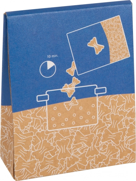Картонената кутия се отваря и затваря лесно и на гърба предлага ясен картинен „рецептурен“ процес.