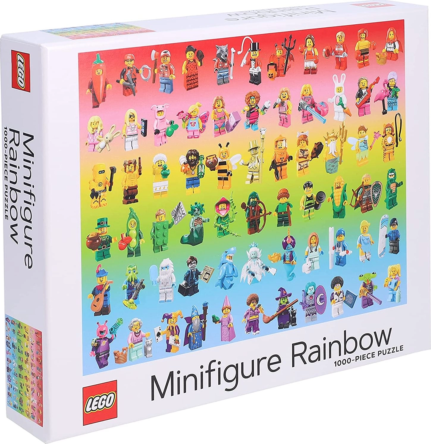 Този дизайнерски пъзел ще зарадва всеки фен на LEGO и почитател на цветните предизвикателства. Десетки уникални минифигурки са подредени по цветове, създавайки ефектен дъгов преход, който е удоволствие както да подреждате, така и да изложите. Качественият печат с безвредни бои и матовата повърхност осигуряват перфектна четливост на детайлите без отблясъци.