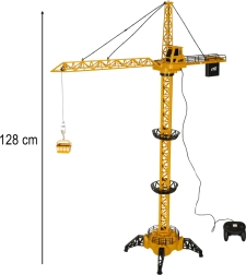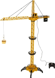 Дистанционно управляван строителен кран ще зарадва малките строители с реалистични функции и часове забавление. С височина до 128 см, въртяща се кула и функционална кука той лесно вдига и спуска товар с помощта на включения дистанционен контролер. Играта се подсилва от светлинни и звукови ефекти, а сглобяването е лесно у дома.