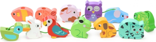 Низанката подпомага креативността и фината моторика, когато децата нанизват животинските мъниста на връвчето.