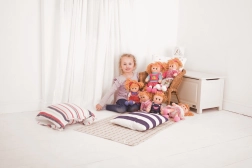 Играта с куклата развива умения като обличане, гушкане и грижа, което насърчава емпатията и сръчността на пръстите.