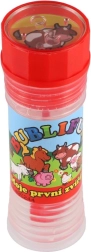 Забавен бълбукатор с мотив Моите първи животни ще зарадва всяко дете. Съдържа 50 мл сапунен разтвор, във капачката е интегрирана игра, а духалката е част от капачката. Идеален за празненства, игри на открито и малки награди. Подходящ за деца от 6 години.
