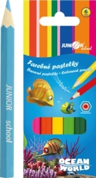Пастелите са опаковани в цветна картонена кутия с морски мотив, която вдъхновява децата за още творчество. Качествените материали и прецизната изработка гарантират дълъг живот и устойчивост на чупене, така че децата могат да се наслаждават на творческия процес без притеснения. Освен това компактната опаковка от 6 броя е идеална за използване у дома, в училище или по време на път.