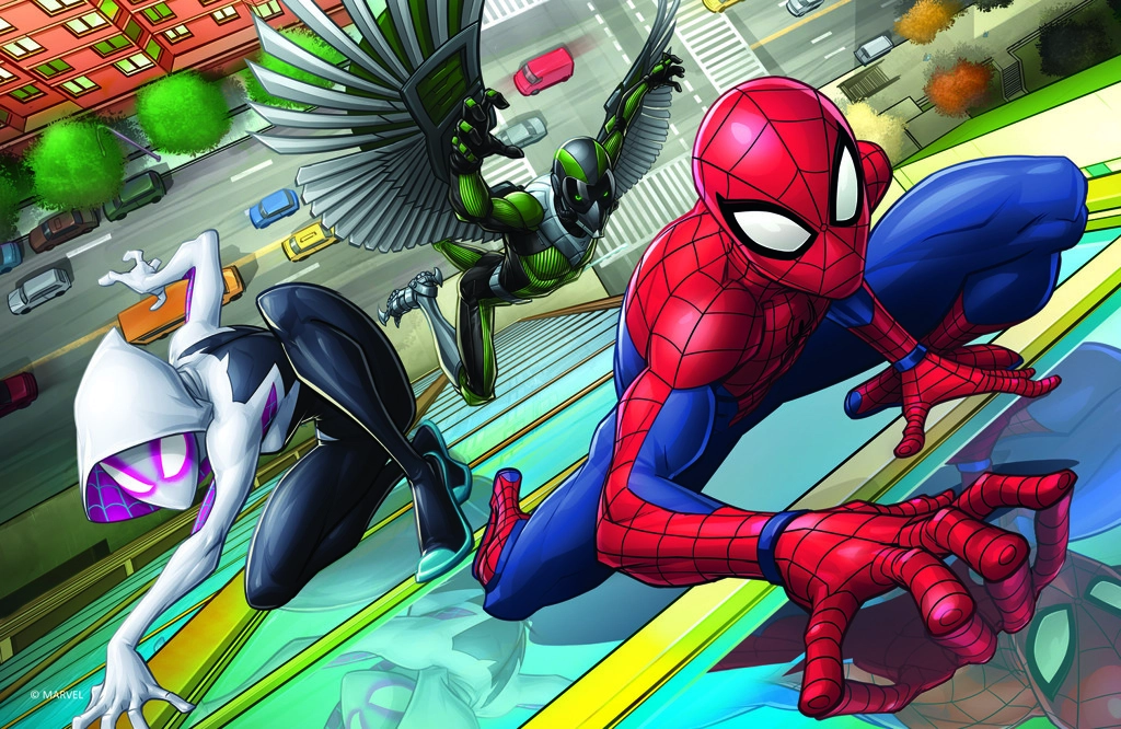 Живите и динамични илюстрации на Спайдър-Мен и неговите приятели внасят енергия и вълнение в играта.