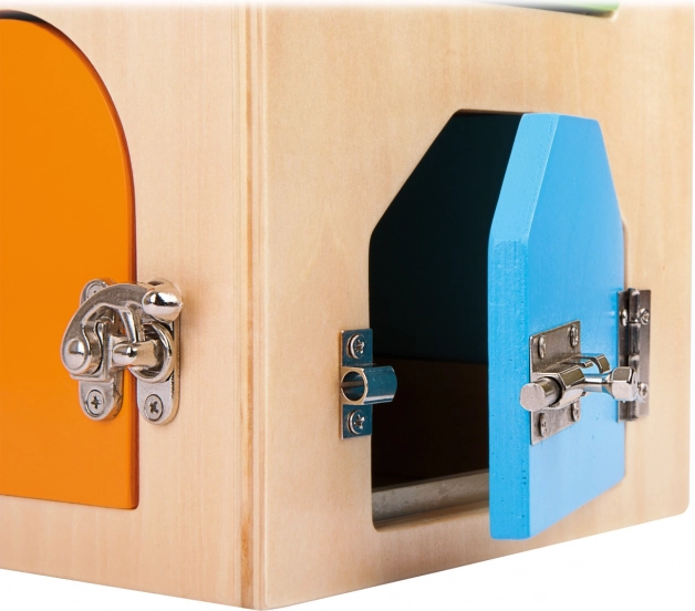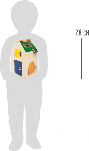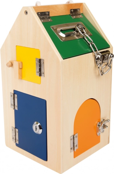 Моторната къщичка с ключалки small foot е умна дидактическа играчка, която позволява на деца над 3 години безопасно да изследват света на закопчалките и механичните елементи. Всяка вратичка крие различно предизвикателство – от U-ключалка и цилиндрична ключалка, през различни винтове и лостчета, до панти и предпазна верижка. Така естествено се развиват координацията око–ръка, търпението и концентрацията.