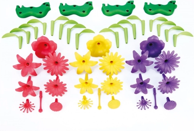 Съдържа 4 основи, 16 стъбла и листа и 24 цветни елемента в ярки цветове – лилии, петунии и маргаритки за разнообразна игра през цялата година.