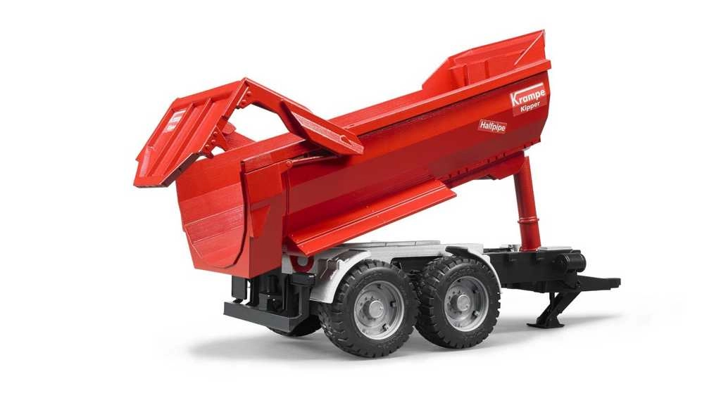 Точно пластмасово копие на земеделското ремарке KRAMPE, което носи на децата автентична фермерска игра. Благодарение на функционалната самосвална каросерия с автоматично отваряне на задната стена, товаренето и разтоварването са лесни и забавни. Моделът е прецизно изработен до най-малките детайли и без проблем се свързва с тракторите BRUDER.