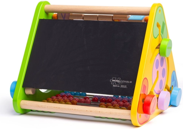 Открийте пъстрия свят на ученето и забавлението с многофункционалния дървен триъгълник BIGJIGS BABY. Предлага до 5 различни активностисметало, дъска за рисуване, азбука с картинки на английски, разпознаване на цветове и числа и животни. Здравата конструкция без отделни дребни части е идеална за дома и за път, развива фината моторика, координацията и когнитивните умения.