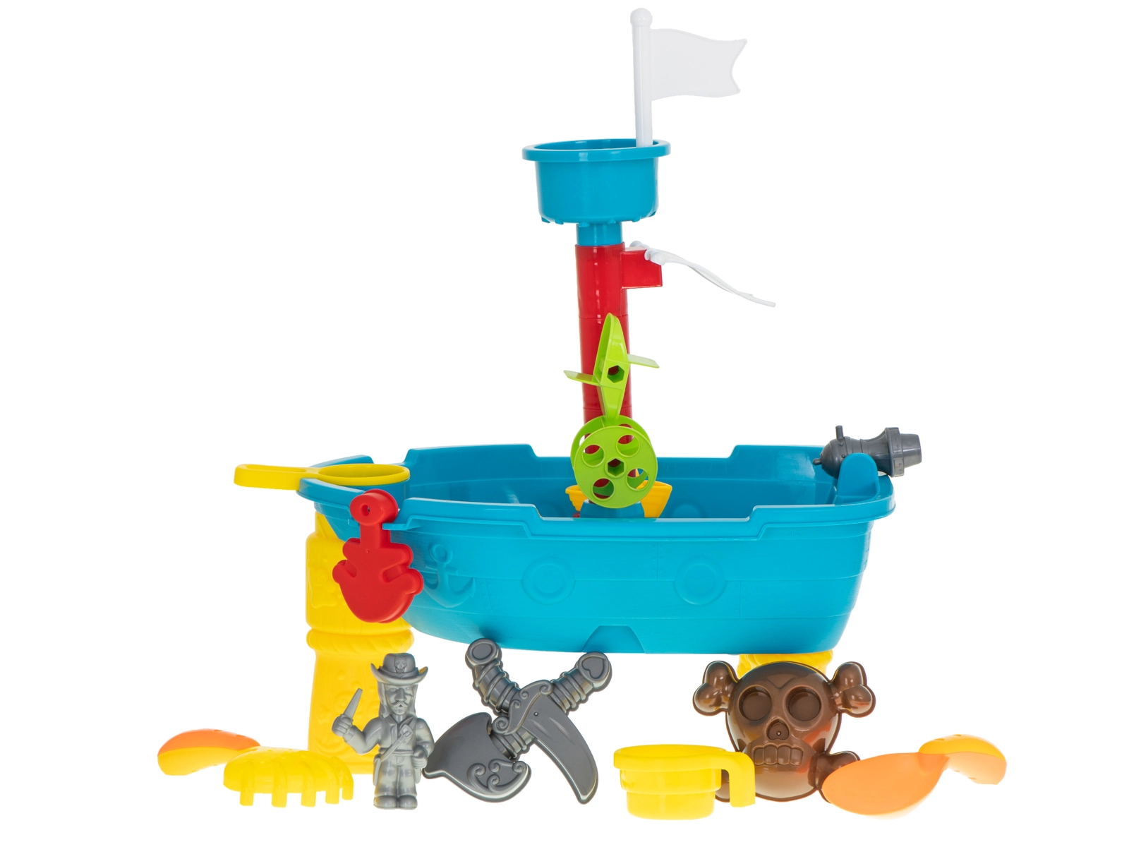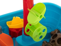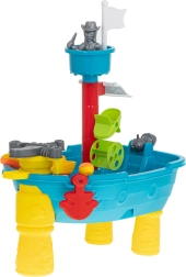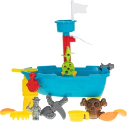 С пиратската корабна масичка за игра, която комбинира водна и пясъчна игра, децата се впускат в безкрайни приключения. С този мултифункционален комплект пред тях се отваря свят, пълен с водни игри и пясъчни постройки.