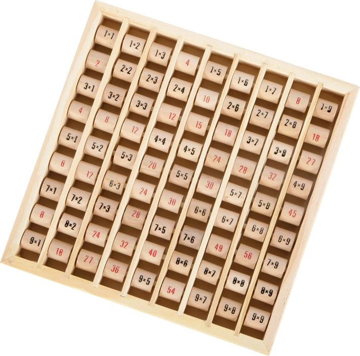 Тази дървена таблица за умножение с въртящи се цилиндърчета подпомага логическото мислене, концентрацията и увереността в смятането. Децата могат да въртят цилиндърчетата, да сменят примерите и веднага да проверят правилния резултат – идеално за самостоятелно упражнение и съвместно учене с родителите.