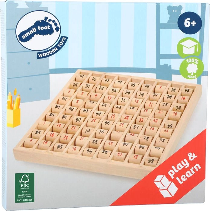 Умна дървена помощна средство за деца от 6 години, която по забавен начин упражнява малката таблица за умножение. Благодарение на въртящите се цилиндърчета лесно сменяте задачите и проверявате резултата. Изработено от 100% FSC сертифицирано дърво за безопасно и устойчиво учене. Компактни размери 21 × 21 × 2 cm, подходящи за бюро и раница.
