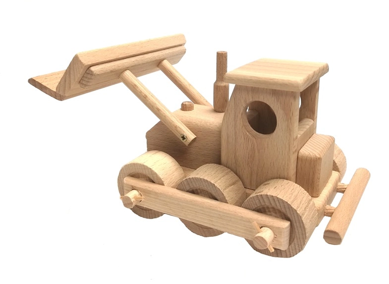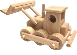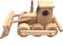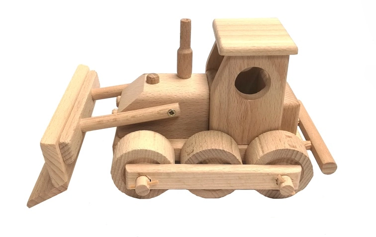Класически дървен булдозер от висококачествен буков дървен материал за малки строители. Има подвижен нож, въртящи се колела и заоблени ръбове за безопасна игра. Повърхността е само восъчна и полирана без химически обработки, така че запазва естествения си вид. Идеален за имагинативна игра у дома и на пясъчника.