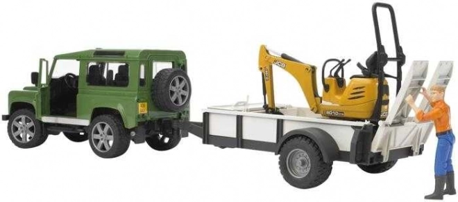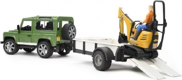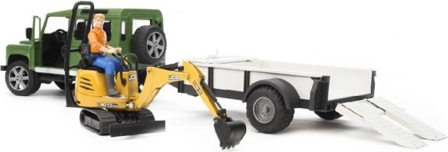 Игровият комплект Bruder Land Rover с JCB минибагер дава на децата чудесна възможност да развиват въображението и сръчността си. Моделът SUV е оборудван с детайлен силов агрегат, отварящи се врати и заден отсек, което носи максимално автентично изживяване. Окачени мостове и функционално управление допълват реалистичната игра, а сваляемото теглично устройство разширява възможностите на комплекта.