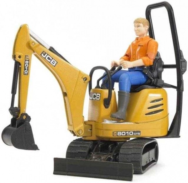 Ремаркето със сгъваеми рампи позволява лесен транспорт на жълтия минибагер, който е оборудван с въртяща се кабина и функционално рамо с кофа. Минибагерът е напълно съвместим с други фигурки Bworld, което го прави перфектно допълнение към всяка детска строителна площадка.