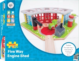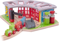 Дървеното депо е предназначено за пет различни влакчета и включва функционален въртящ се кръг, който позволява лесно придвижване на влаковете между отделните гаражи. Системата включва отварящи се врати и зарядна станция, което допринася за реалистично изживяване при игра.