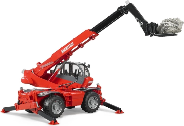 Този универсален телескопичен товарач в мащаб 1:16 достоверно пресъздава истинската машина MANITOU. Децата ще се радват на реалистична игра благодарение на функционалното рамо, изтегляемите опори и въртящата се кабина. Здравата пластмасова изработка е идеална за ежедневна игра у дома и навън.