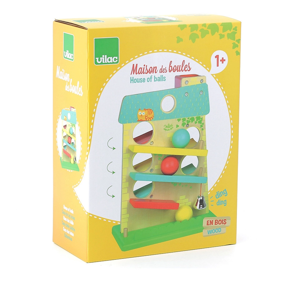 Открийте магията на движението и звука с каскадната къщичка VILAC. Благодарение на добре обмислената конструкция топчетата се движат плавно от страна на страна по трите рампи и завършват с приятно иззвъняване на металното звънче, което децата обожават. Здравата изработка от дърво и метал гарантира дълъг живот и безопасна игра.