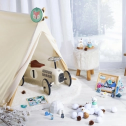 Благодарение на гумираните колела движението е тихо дори върху твърди настилки, така че проходилката е подходяща както за дома, така и за тротоара. Ретро дизайнът изпъква във всяка детска стая и стимулира въображението и радостта от движението.