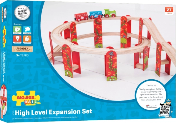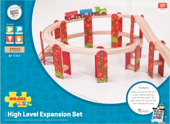 Представяме ви Bigjigs Rail многоетажен дървен железопътен конструктор – идеален за развитие на детското творчество и моторните умения. Благодарение на висококачествените и отговорно добити натурални материали, комплектът обещава часове забавление и е съвместим с всички останали дървени релсови системи на пазара.