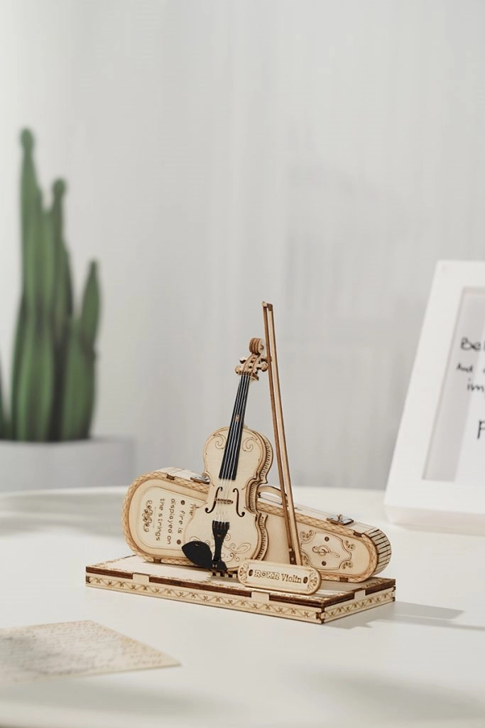 Този дървен 3D пъзел виола е добре обмислен декоративен модел, който изпъква на рафт, работно бюро или в музикален кът. Естествената дървена повърхност и фините резбовани детайли подчертават майсторската изработка и придават на интериора уютен, артистичен акцент.