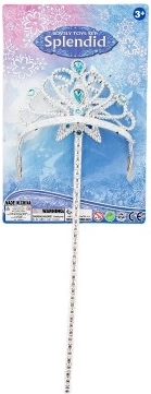 Комплект за красота за принцеси включва ефектна корона и вълшебна пръчица, идеален за малки феи и принцеси за празненства или карнавали.