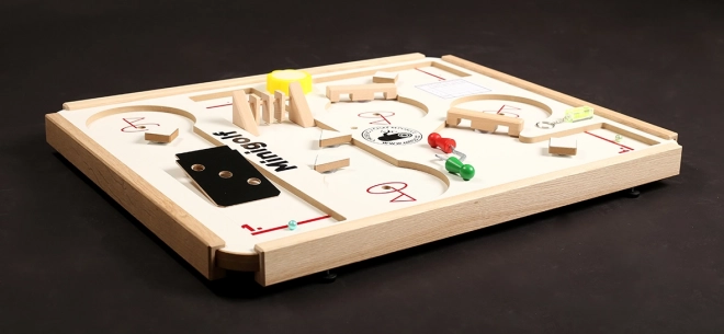 Настолният миниголф предлага оригинално забавление за деца и възрастни. Четири писти с препятствия на вендузи позволяват свободно разположение и безкраен брой комбинации. Всяка игра е различна, тренира наблюдателност, търпение и фина моторика. Благодарение на здравите материали е идеален за честа игра у дома и в училища.