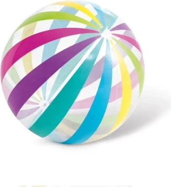 Прозрачната топка с пъстри ивици и точки привлича вниманието на плажа и до басейна и раздвижва всяко лятно забавление.