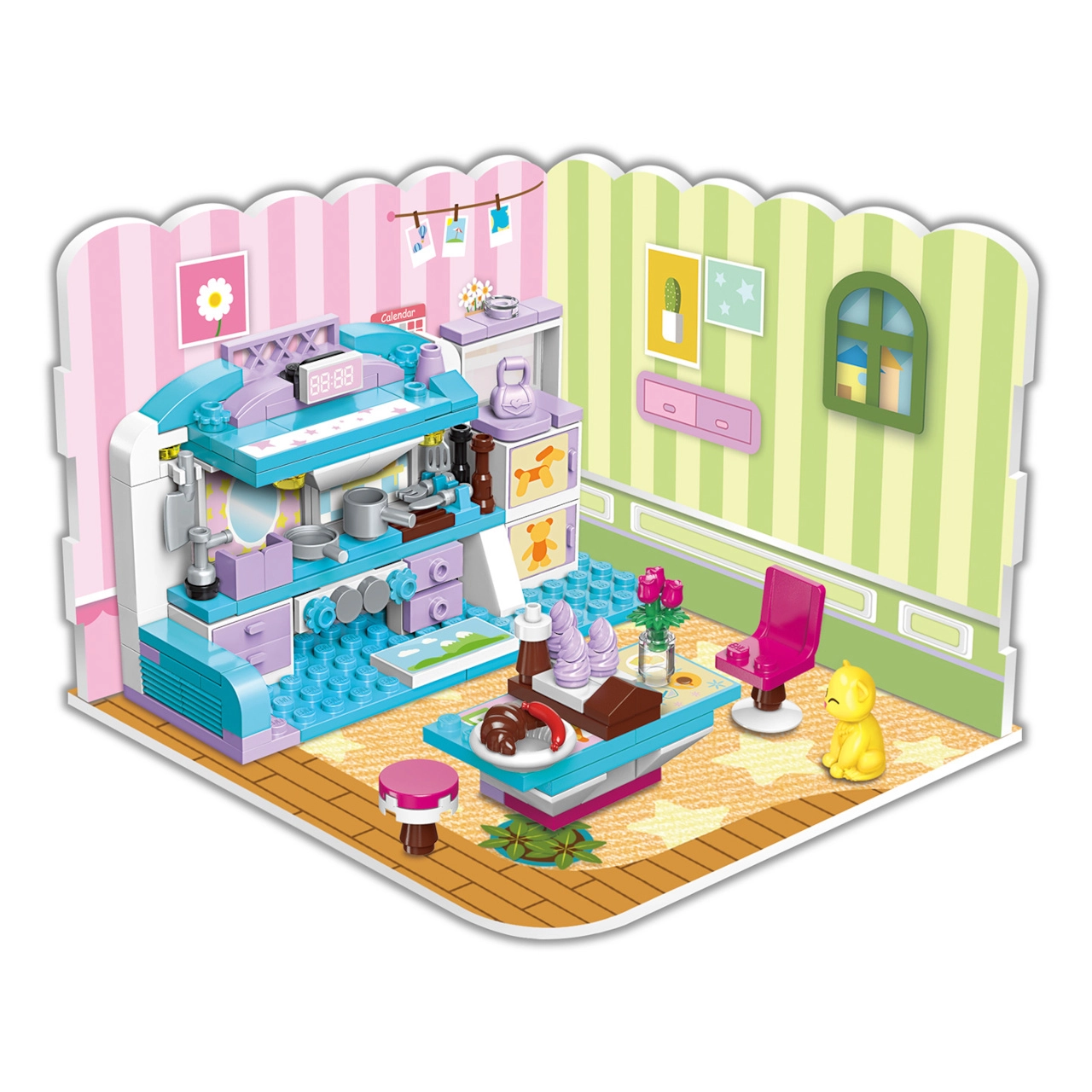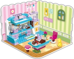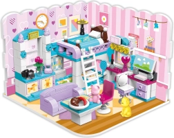 Конструкторът QMAN Момичешка стая 3 в 1 предлага на децата безкрайни възможности за строене и истории. От един сет създавате цяла стая с двуетажно легло, бюро и декорации или я преобразявате в уютна всекидневна или трапезария. Пъстрите цветове и детайлните аксесоари вдъхновяват за дълга, креативна игра.