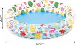 Басейнът с размери 122x25 см предлага идеално пространство за детско забавление и освежаване.