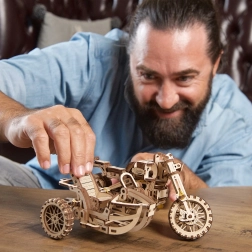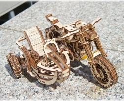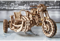 Сглобеният модел на мотоциклет със сайдкар е с размери приблизително 22 × 16 × 11,5 cm и се превръща във впечатляващ акцент в интериора. Подробното илюстровано ръководство води строителя стъпка по стъпка и осигурява приятно изживяване без необходимост от лепене.