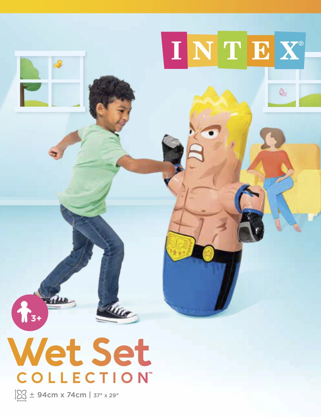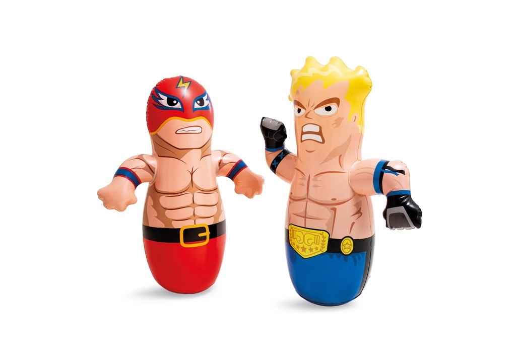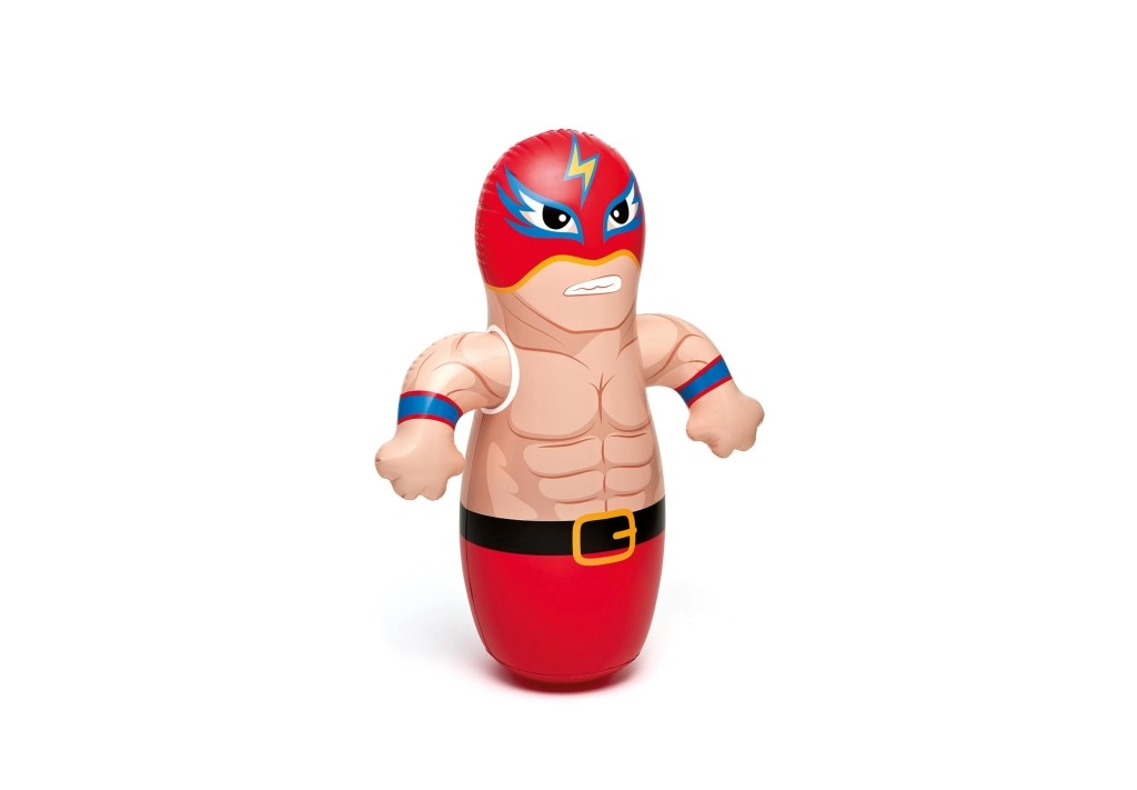 Забавна и безопасна игра за малки шампиони! Тази надуваема боксова фигура с височина 91 см благодарение на водната тежест се изправя сама след всеки удар, така че децата могат да тренират без край. Изработена от издръжлив винил 0,20 мм, подходяща за употреба на закрито и открито и налична в две атрактивни визии – боксьор и кечист.