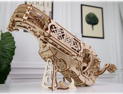 292 прецизно лазерно изрязани елемента от качествен шперплат се сглобяват без лепило. Декоративните орнаменти и видимите предавки я правят атрактивна украса.